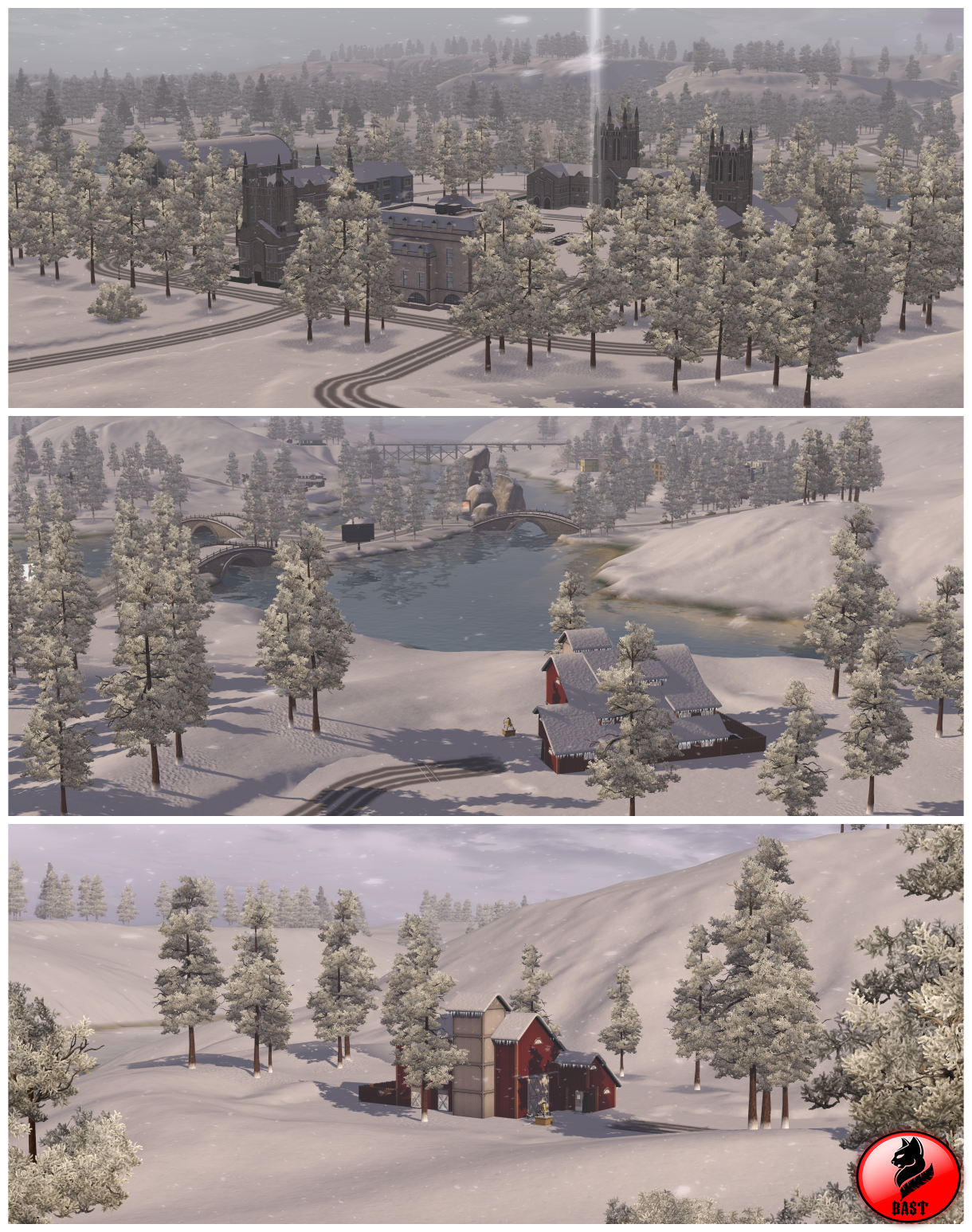 Установлена погода из Мунлайт Фолз. Она полностью соответствует идеи погоды города - холодного и дождливого. Изменены некоторые текстуры дороги и придорожное оформление. Некоторые участки были удалены и добавлены новые. Город застроен.